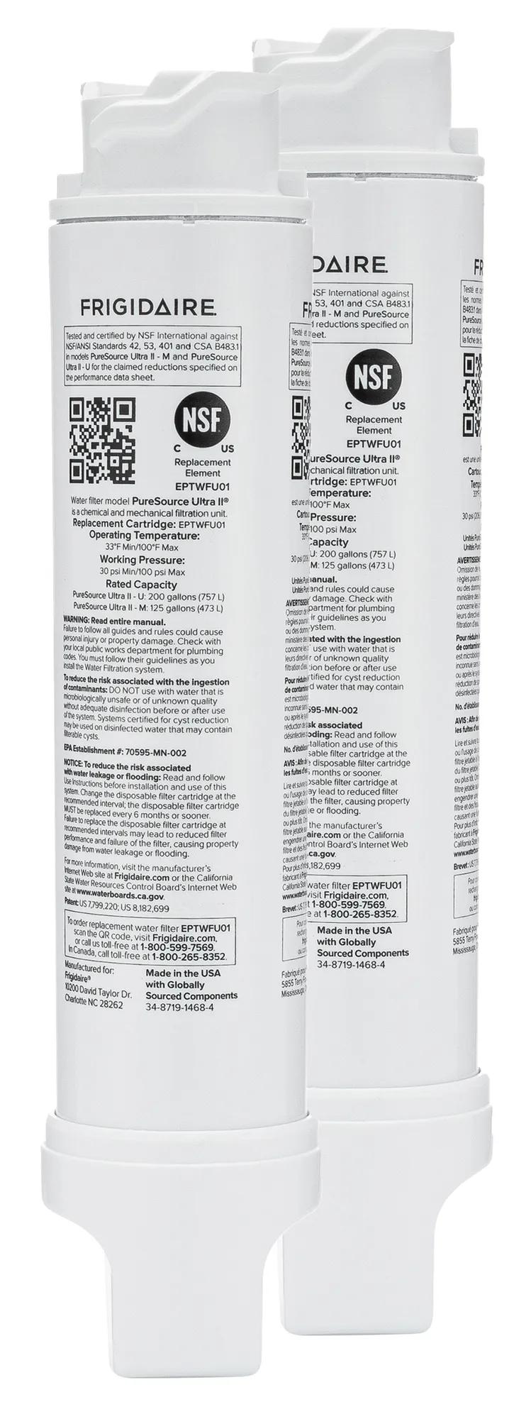 Frigidaire Genuine Filters are certified by the Water Quality Association to WQA/ASPE/ANSI S 803 for sustainability.