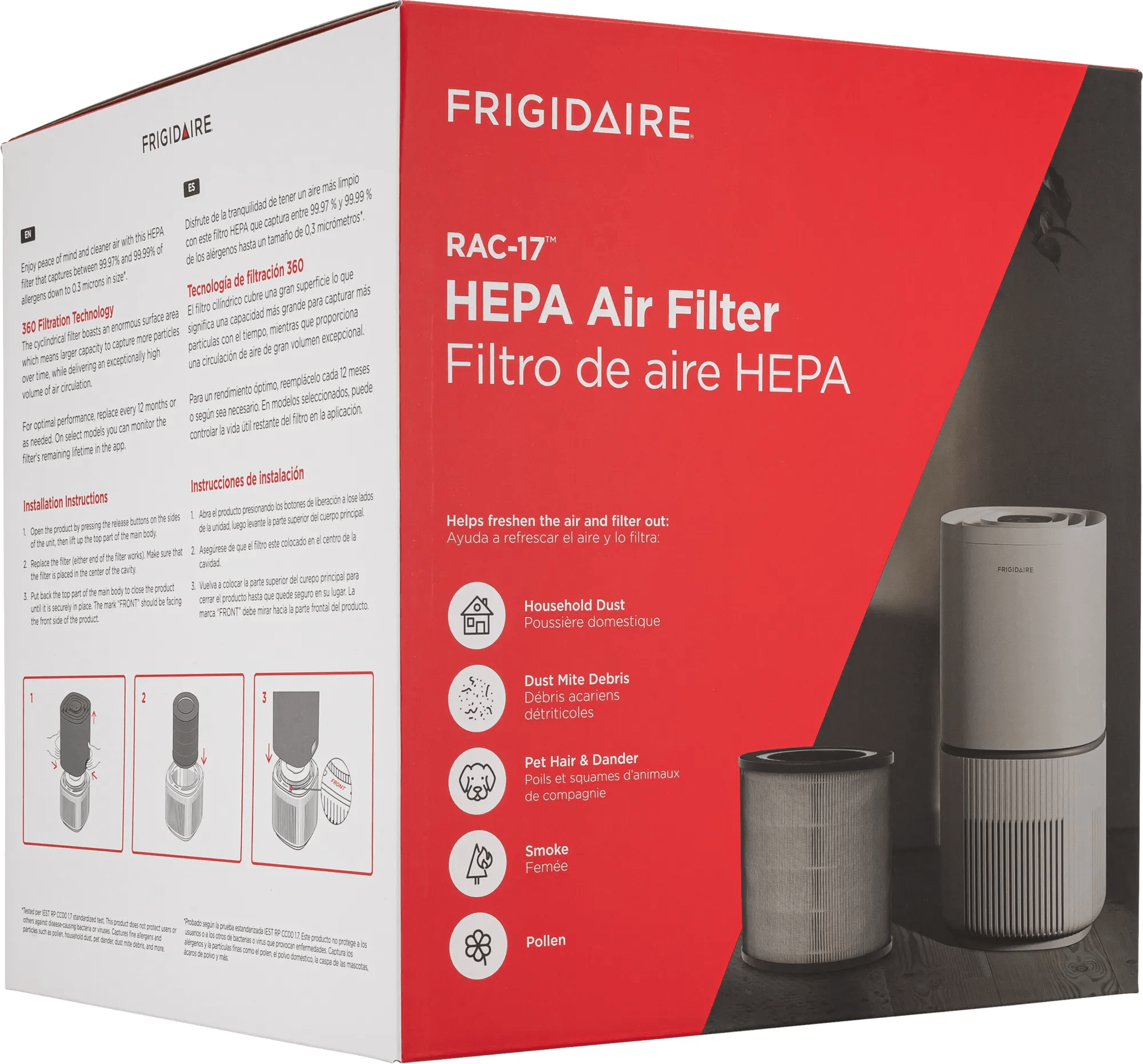 Captures between 99.97% and 99.99% of inanimate allergens and particles such as pollen, household dust, pet dander, dust mite debris, and more down to 0.3 microns in size.*1