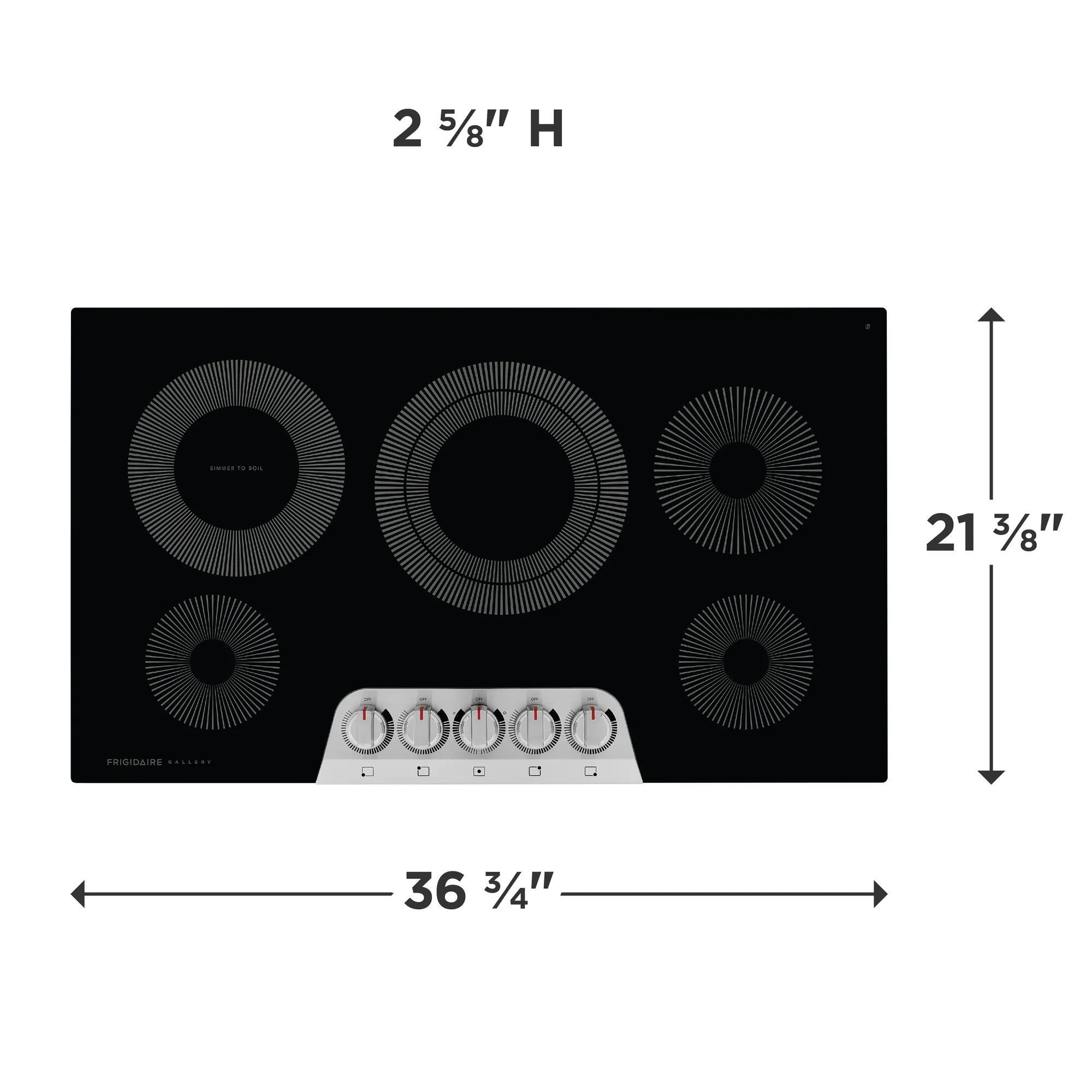 We promise that your new 36" Frigidaire radiant cooktop will fit your existing countertop cutout of the same width and configuration, or we will reimburse you for cabinet modification costs up to $100.1