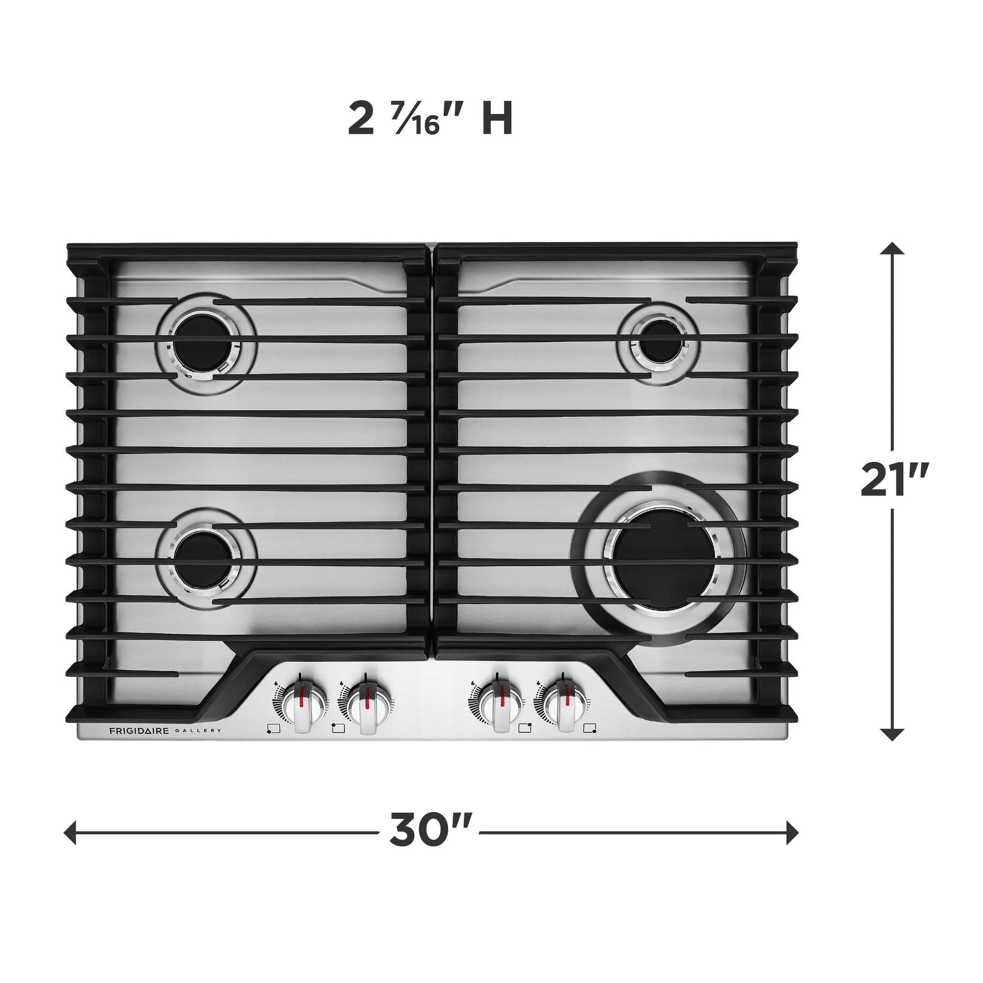 We promise that your new 30" Frigidaire Gallery gas cooktop will fit your existing cut-out, or we will reimburse up to one hundred dollars for professionally modifying the countertop.1