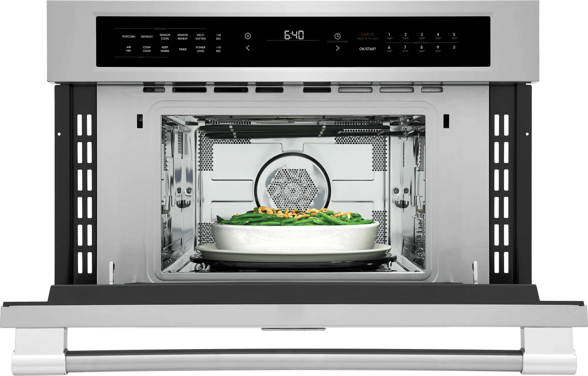Features a premium, responsive interface, featuring one-touch Sensor Cooking and nine Quick Start options.