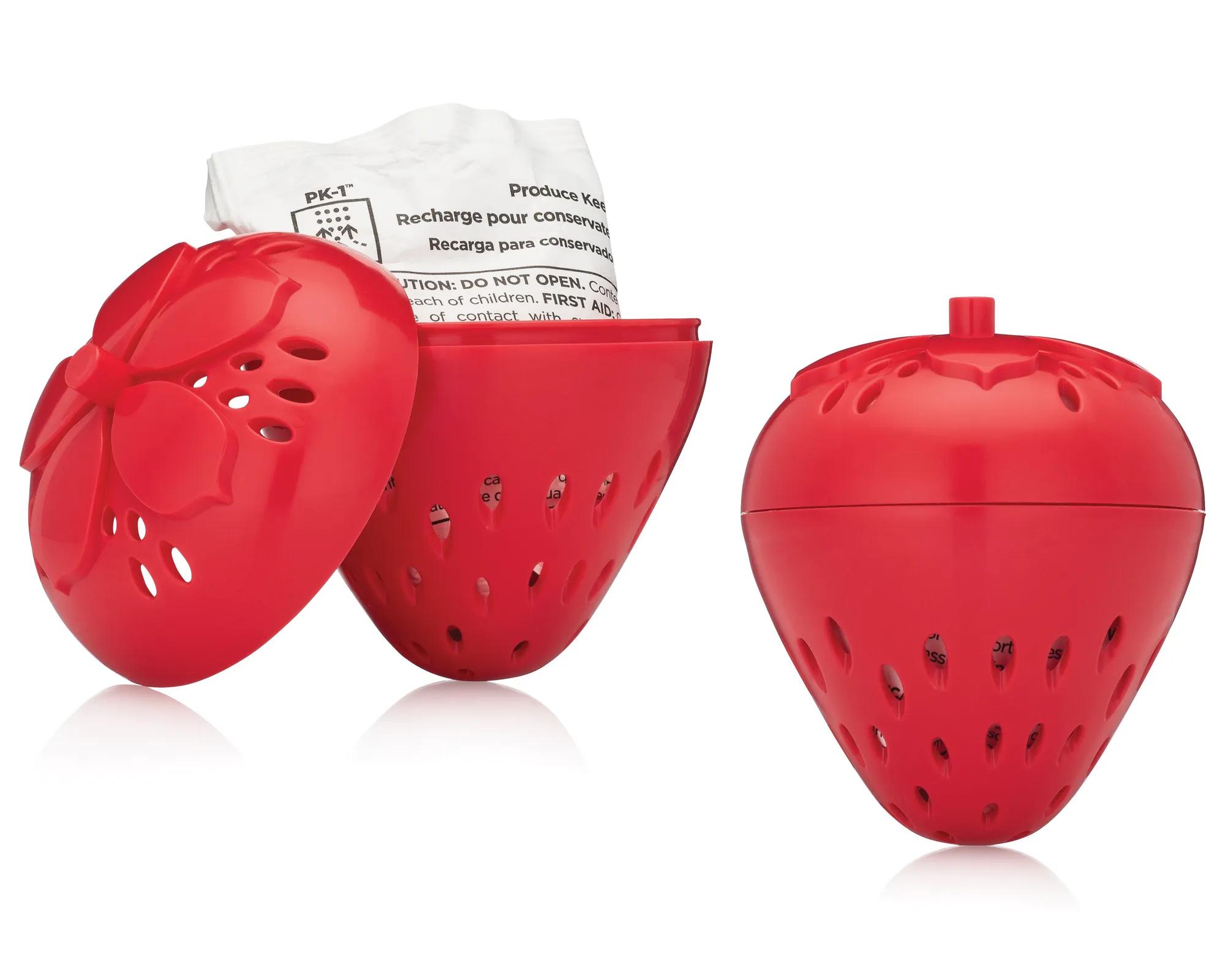 Includes 2 refillable produce savers. To refill, squeeze base and open top of holder, place 1 refill packet per holder inside. For refills purchase, PK-1™.